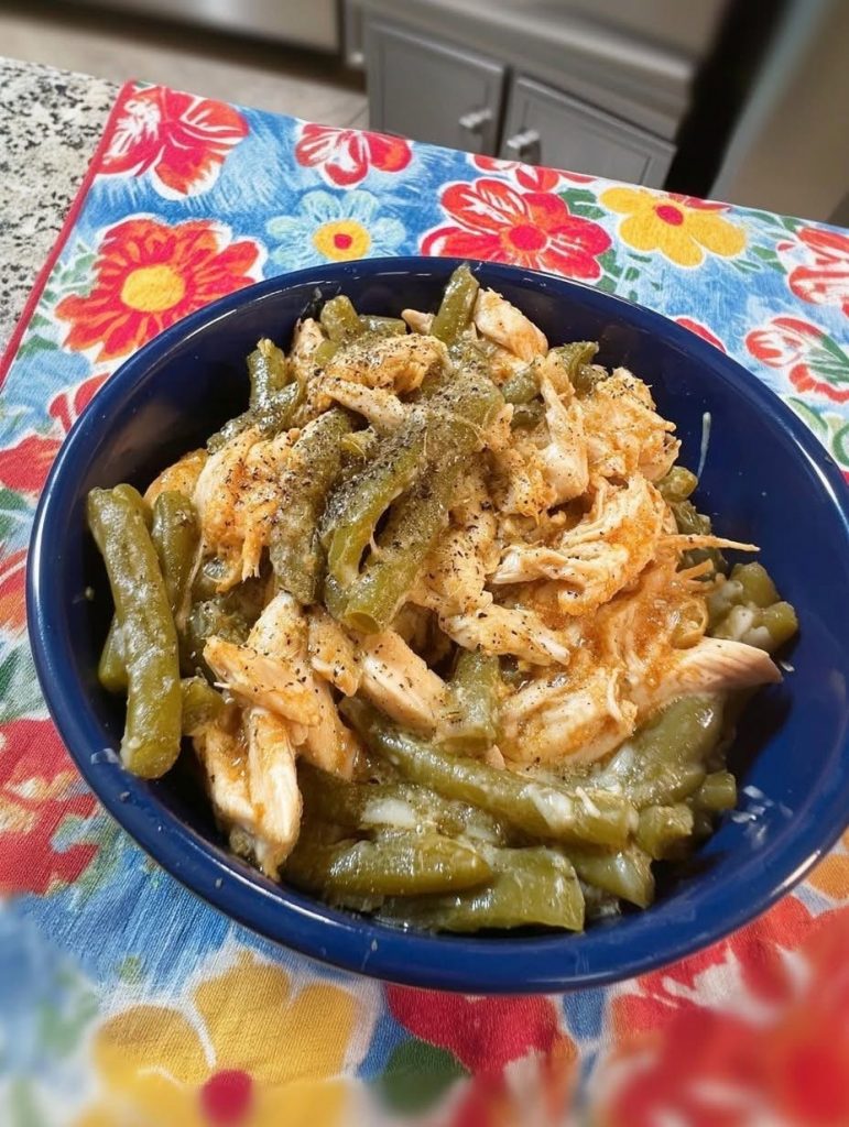 - Combine sautéed onions, grilled chicken, and green beans on a plate.
