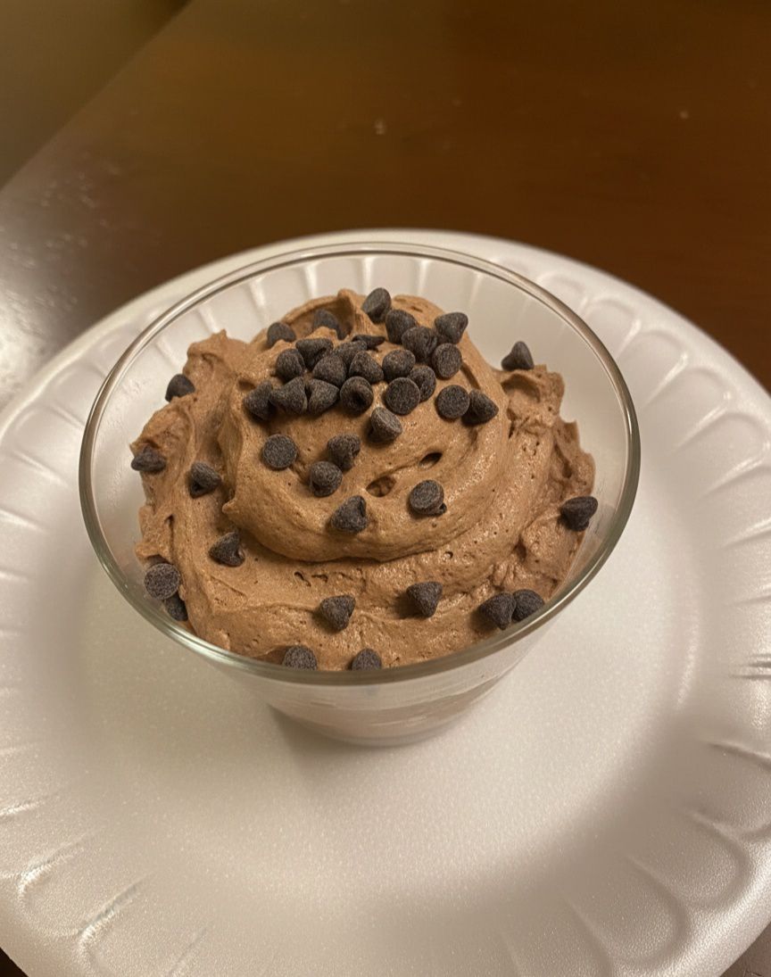 I chilled it for 10 minutes and topped it with a few chocolate chips.