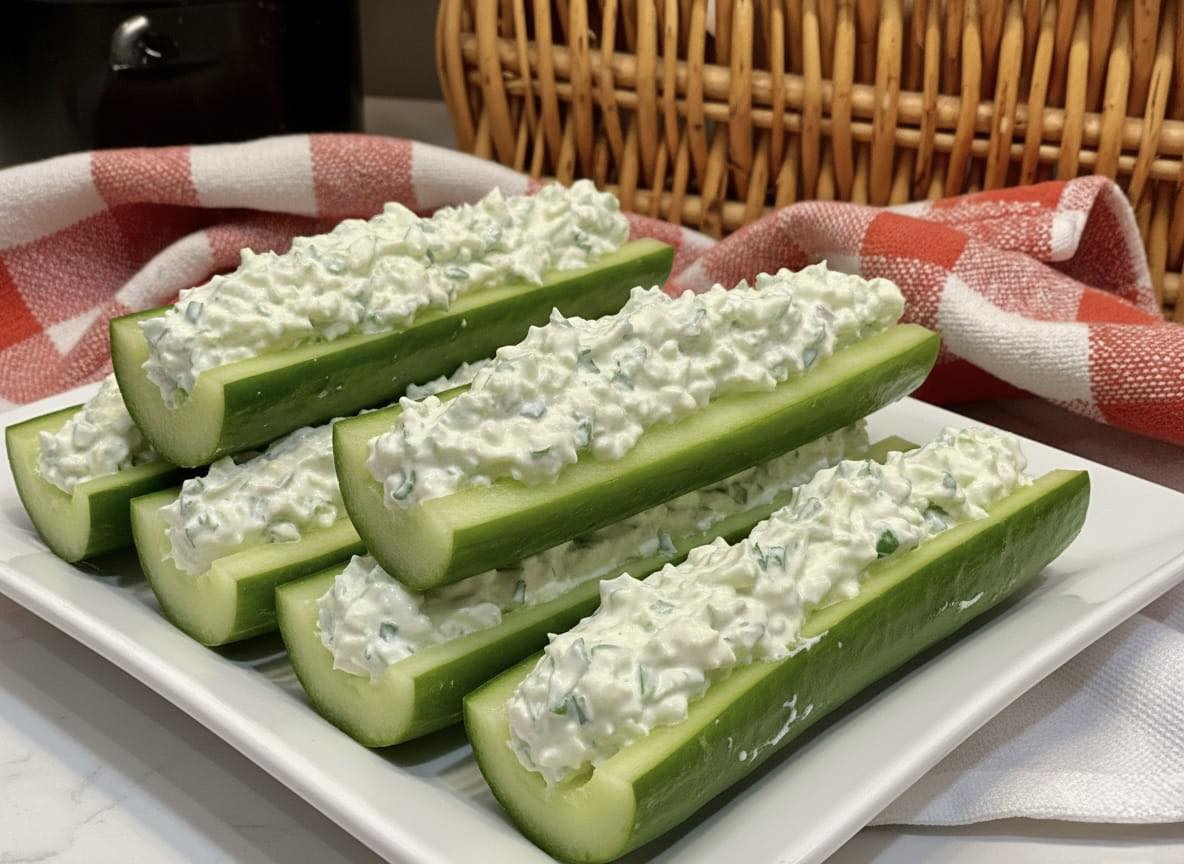 Spoon into cucumber halves.