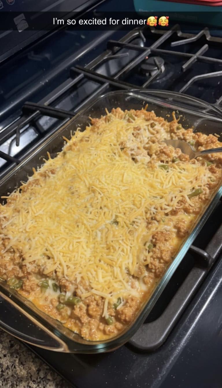 Mix ¾ cup cooked ground turkey with 1 tbsp Greek ypogurt, 1 tbsp Fage yogurt, ½ tsp Old El Paso taco seasoning, and 1 tbsp grated light non-fat cheddar. Spread into a mini dish, top with a little more cheese, and bake 15 minutes until bubbling. Scoop with a spoon. It eats like taco filling turned into a creamy casserole — no tortillas, no heaviness.