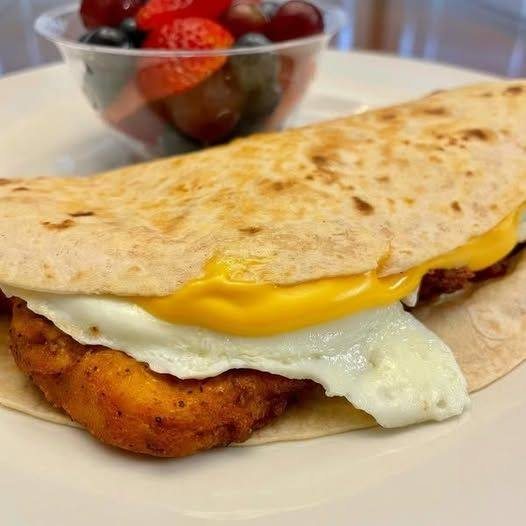 Put everything into the quesadilla and spray the pan with olive oil spray to brown the tortilla and melt the cheese!