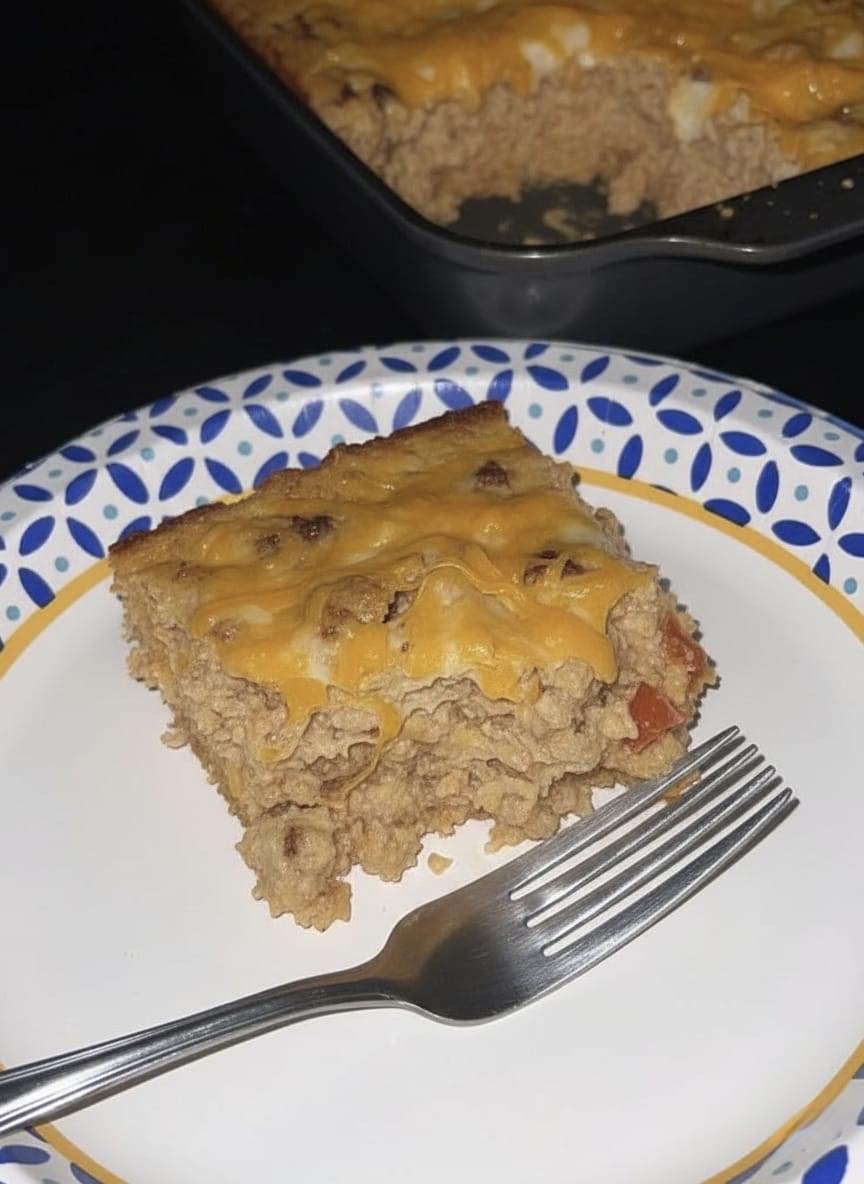 In a bowl mix ¾ cup cooked ground turkey, 1 tbsp Fage yogurt, ½ tsp Old El Paso taco seasoning, and 1 tbsp light shredded cheddar. Spread into a small baking dish and bake 15–18 minutes until hot and lightly golden on top. Scoop with a spoon. It tastes like taco filling turned into a soft bake without shells.