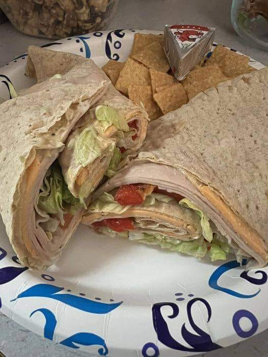 This wrap was 4 points! I could only eat half of it though. Point breakdown: Flaxseed, oat bran, and whole wheat lavash bread: 2 points Turkey breast: 0 points Dijon mustard: 0 points Velveeta cheese slices (2): 2 points Lettuce: 0 points Roasted red peppers: 0 points On the side: Good Things Corn (30 grams): 4 points Laughing Cow Cheese: 1 point The whole meal would have been 9 points but I only ate half the wrap, so 7 point lunch. I had an apple for dessert.
